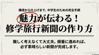 修学旅行の新聞の書き方に悩む中学生や保護者へ。本記事では、テーマの決め方から5W1Hを使った情報整理、見出しやレイアウトのコツまで、修学旅行の新聞の書き方を中学生向けに分かりやすく徹底解説します。班制作の役割分担や写真の注意点も網羅。評価が上がる魅力的な紙面を作りましょう!