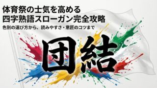 体育祭のスローガンの四字熟語を探している中学生必見!青・赤・黄・緑・白の色別に、かっこいい言葉やおしゃれな表現など、最高の体育祭のスローガン用四字熟語を厳選して60個紹介します。絶対に被らない当て字の作り方や注意点も解説。クラスの団結力を高める言葉が必ず見つかります!