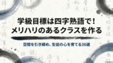 ここまで、小学校6年生の学級目標の例として、かっこいい四字熟語やおしゃれな英語といった言葉の選び方から、児童主体で誰もが納得のいく合意形成による決め方、そして日常を彩る掲示物の工夫や、プロジェクト活動・評価シートを活用した運用方法まで、かなり詳しく網羅的にお話ししてきました。